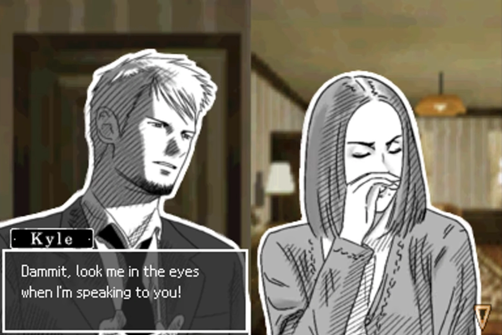 He also has destructive habits. It is suggested drinking is one of his vices, as in the beginning of the game, Ed asks, "Hung over again, eh?" after Kyle mentions he has a headache. His habits lead him to getting fired by Ed in Last Window, as well as struggling to pay his rent. He also seems to lack some life motivation, possibly due to mild depression, and he feels his Red Crown job is "miserable". It is possible he is still not quite over past events like his girlfriend's death and what happened with Bradley.