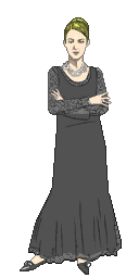 Margaret is a woman in her forties to sixties with sandy blonde hair, pale skin and green eyes. She is often seen in a long black dress with gray sleeves adorned by a black pattern of rose thorns. Her hair is tied to make a wide bun hairstyle except for her fringe which is directed to the left. She also wears jewels and a ring on her angular finger.